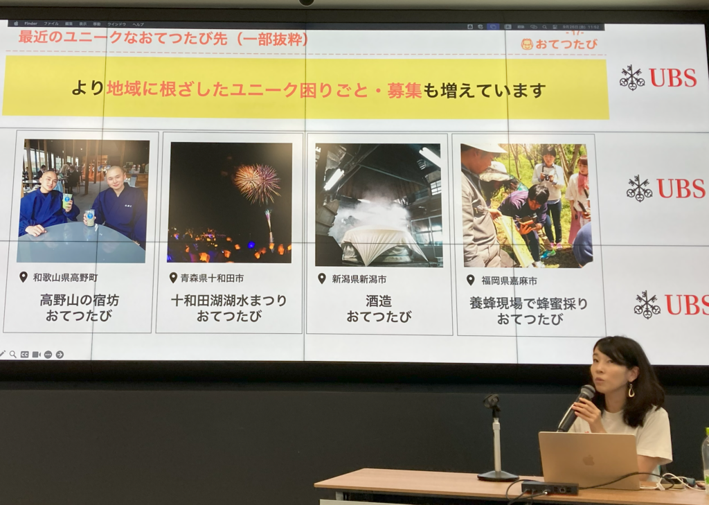 9月26日、東京・大手町にあるUBSグループのオフィスで開かれたイベントに、SVP東京の投資・協働先である株式会社おてつたびの永岡里菜代表が登壇。UBSグループ社員有志とSVP東京パートナーなど計12名が参加し、取り組む社会課題について議論しました。