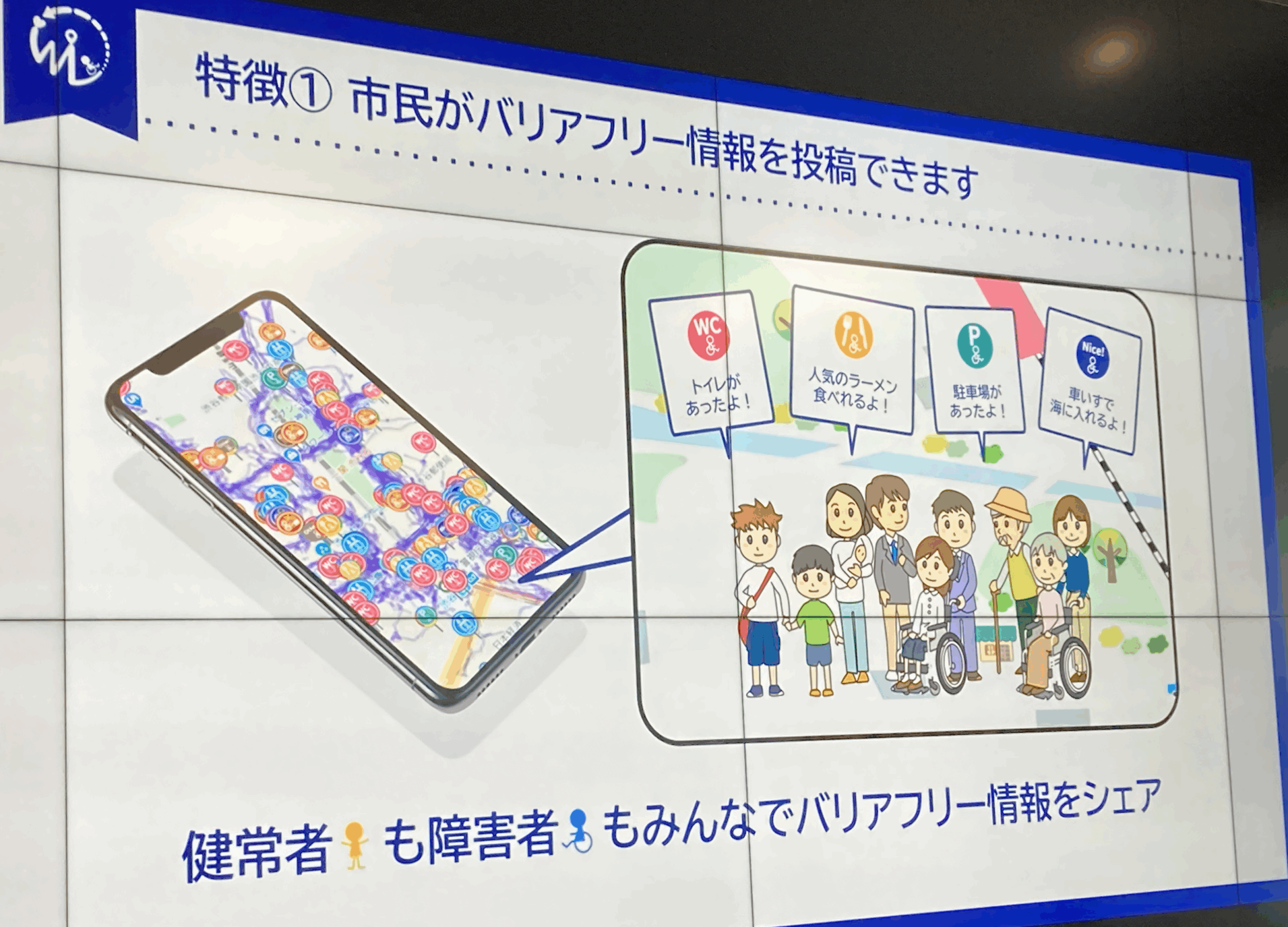 車いすで行ける場所などの情報発信を始め、そして、「みんなでつくるバリアフリーマップ」アプリを開発。レストラン、駐車場、トイレなど、車いすでも使える場所や施設の情報を誰でも投稿でき、無料で活用できるサービスを充実させてきました。