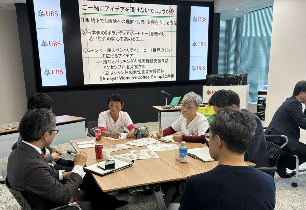 3月26日、東京・大手町にあるUBSグループのオフィスで開かれたイベントに、SVP東京の投資・協働先であるNPO法人ミャンマーファミリー・クリニックと菜園の会(MFCG)の名知仁子代表が登壇。UBSグループ社員有志とSVP東京パートナーの計12名が参加し、取り組む社会課題について議論しました。