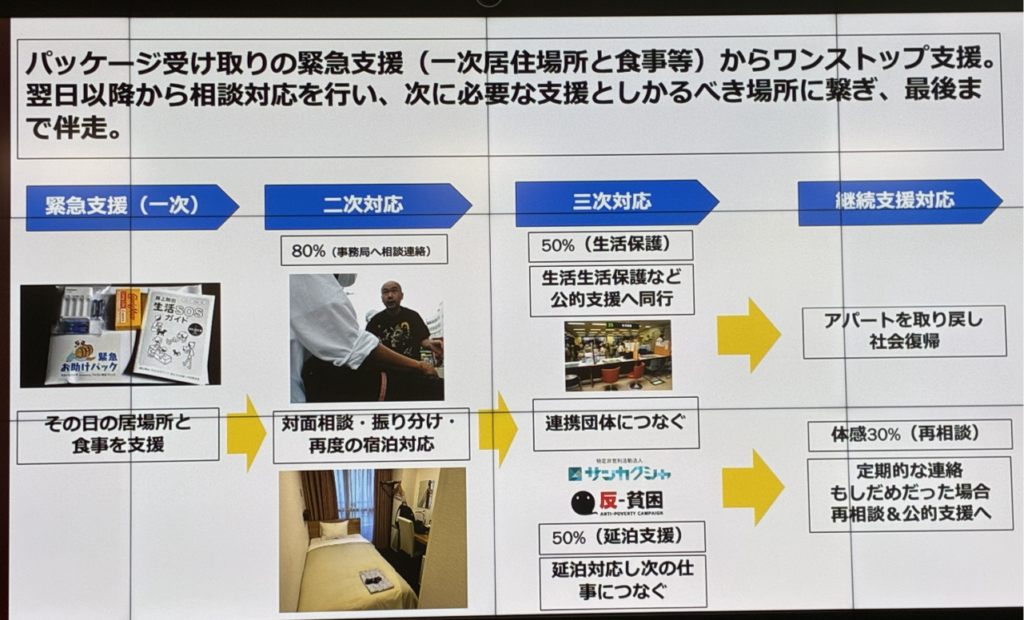 そんな人たちのために「緊急支援パッケージ」を用意し、その晩、一夜を過ごす場所を提供するところから支援を始めるのがトイミッケです。